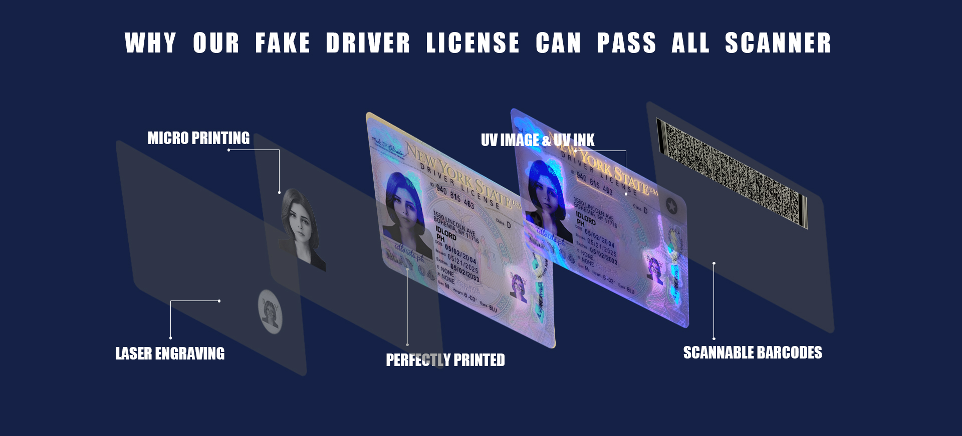 SECURITY FEATURES OF A ID IN THE USA MAY INCLUDE:• Holograms: Difficult-to-replicate holographic elements.• UV Printing: Prints visible under UV light..
