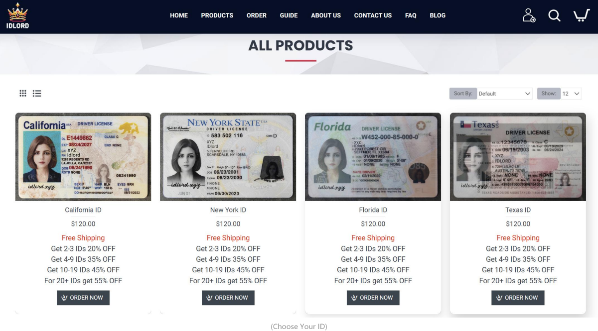 Select a State: Choose the state "ALL FAKE ID" (URL:https://www.idlord.xyz/products) for which you want the fake ID. Different states have different designs and security features. Normally we will recommend client choose an ID from a state different from your usual place of residence for order.