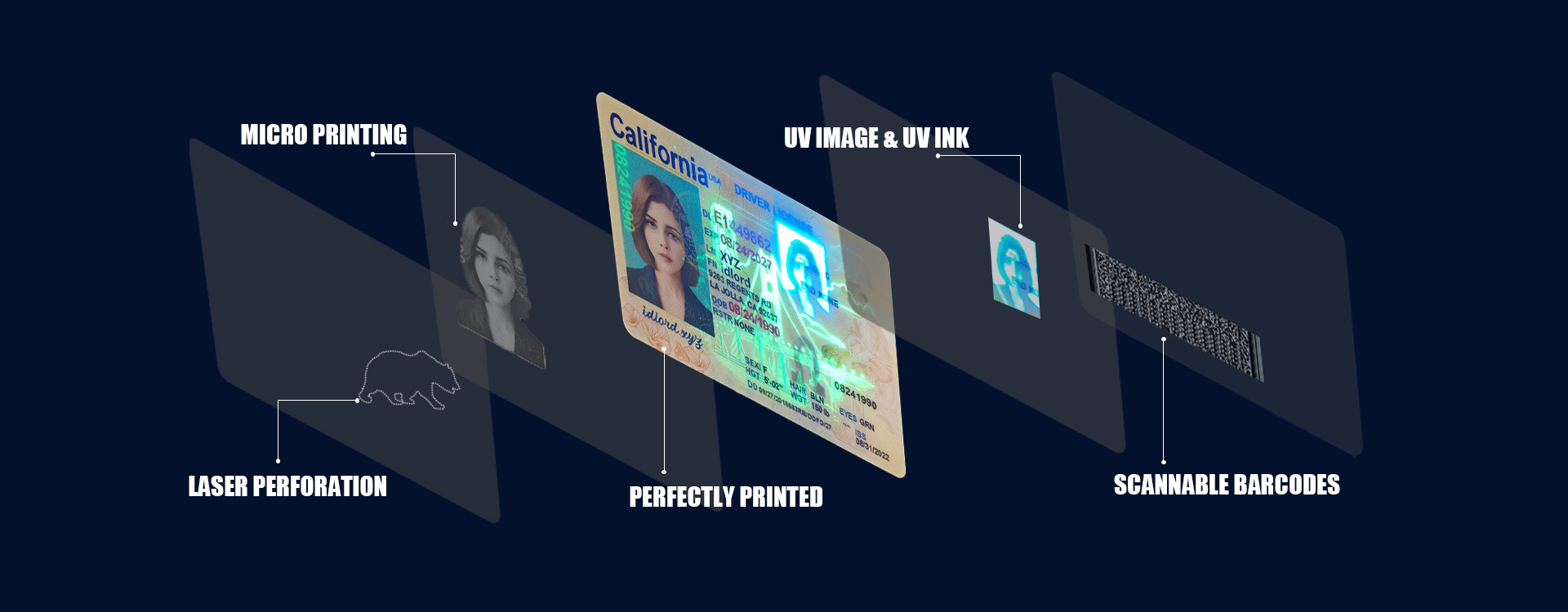 Latest anti-counterfeiting technologies into our new products, such as the laser perforation technique used in California IDs.